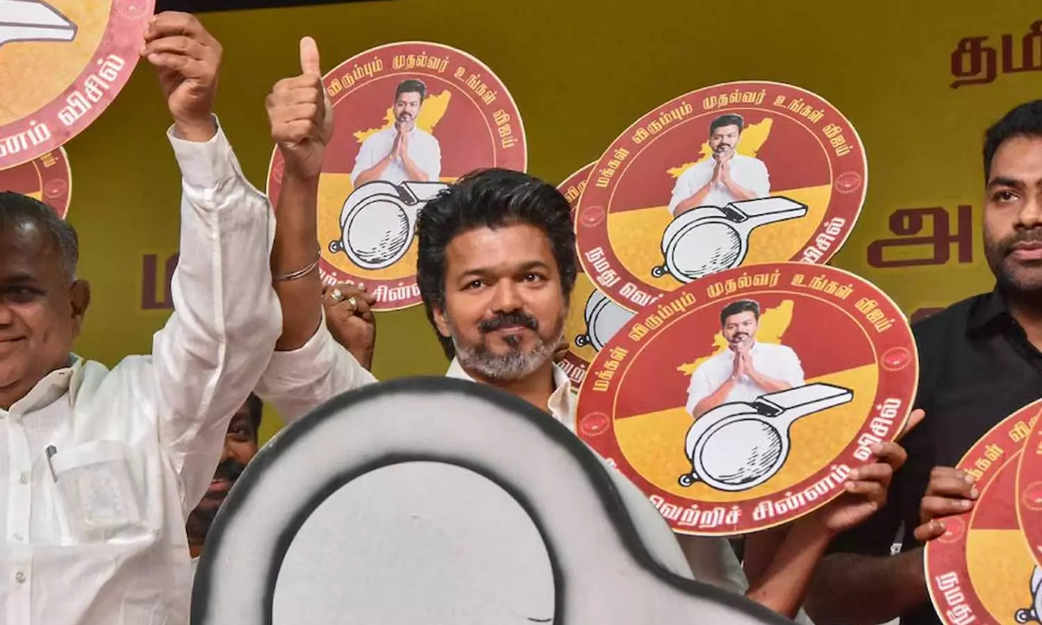 വിസിൽ പോട്... ഇത് ടിവികെ സ്റ്റൈൽ: തെരഞ്ഞെടുപ്പ് ചിഹ്നം അവതരിപ്പിച്ച് വിജയ്
