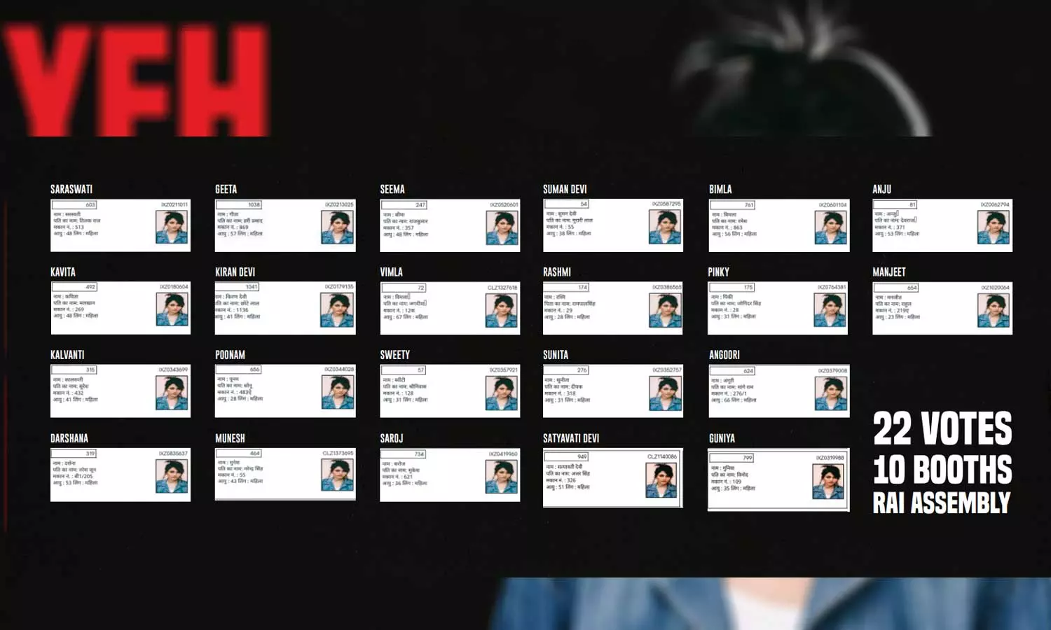 |സരസ്വതി, ഗീത, സീമ, സുമൻ ദേവി, ബിമല, അഞ്ജു, കവിത,കിരൺ ദേവി, വിമല, രശ്മി, പിങ്കി, മഞ്ജീത് തുടങ്ങിയ പേരുകളാണ് കള്ളവോട്ട് നടന്നതെന്നും രാഹുല് പറഞ്ഞു