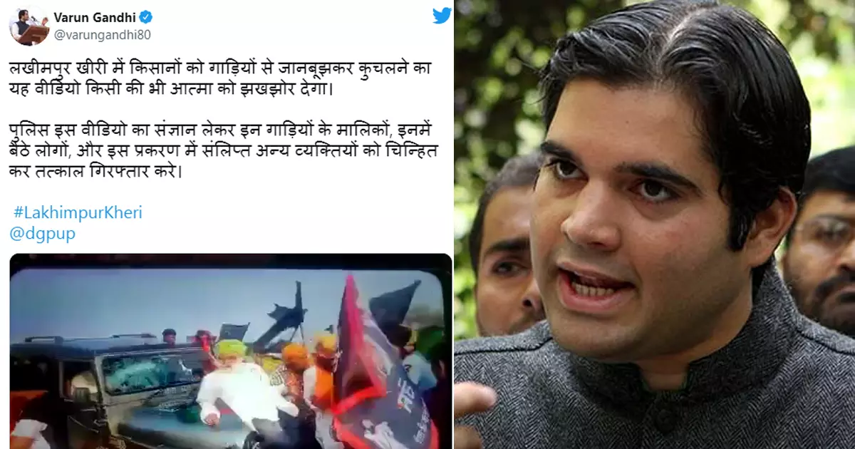 "ലഖിംപൂർ ഖേരിയിൽ കർഷകരുടെ ഇടയിലേക്ക് ബോധപൂര്വം വാഹനം ഇടിച്ചുകയറ്റുന്ന ഈ ദൃശ്യം ആരുടെയും ഉള്ളുലയ്ക്കും. പൊലീസ് ഈ വീഡിയോ ശ്രദ്ധിക്കുക. ഈ വാഹനങ്ങളുടെ ഉടമകളെയും അവയിൽ ഇരിക്കുന്നവരെയും ഈ കേസിൽ ഉൾപ്പെട്ട മറ്റ് ആളുകളെയും ഉടൻ അറസ്റ്റ് ചെയ്യണം"- വരുണ് ഗാന്ധി ട്വീറ്റ് ചെയ്തു.