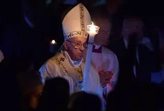 ക്രിസ്തുവിന്റെ ഉയര്ത്തെഴുന്നേല്പിന് തൊട്ട് മുന്പ് കല്ലറക്ക് ചുറ്റുമുണ്ടായ ഇരുട്ടിനെ സൂചിപ്പിക്കാനായാണ് ചടങ്ങുകള് ഇരുട്ടില് ആരംഭിച്ചത്. തുടര്ന്ന് പോപ്പ്, കര്ദിനാള്മാര്, ബിഷപ്പുമാര് എന്നിവരും മാര്പാപ്പയോടൊപ്പം ബസലിക്കയിലെ ദീപങ്ങള്ക്ക് തിരി തെളിച്ചു. 2013ല് പോപ്പ് ആയ ശേഷം ഫ്രാന്സിസ് മാര്പാപ്പ കാര്മികത്വം വഹിക്കുന്ന നാലാമത്തെ ഈസ്റ്റര് ചടങ്ങാണിത്. സെന്റ് ഫ്രാന്സിസ് ബസലിക്കയുടെ മട്ടുപ്പാവില്നിന്ന് മാര്പാപ്പ പ്രത്യേക അനുഗ്രഹം നല്കുന്നതോടെയാണ് വത്തിക്കാനില് ആഘോഷങ്ങള്ക്ക് സമാപനമാകുക.
