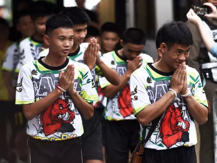 ആശുപത്രിയില് നിന്നിറങ്ങിയ ശേഷം ചിയാങ് റായില് പ്രത്യേകം ഒരുക്കിയ വാര്ത്താസമ്മേളനത്തില് പങ്കെടുത്തു. ഒരേ വേഷത്തിലെത്തിയ കുട്ടികളും കോച്ചും ഏറെ സന്തോഷാവാന്മാരായിരുന്നു. ഗുഹക്കകത്ത് ചെലവഴിച്ച നിമിഷങ്ങൾ അവര് ഓര്ത്തെടുത്തു. ഇത് ഇവരുടെ ആദ്യത്തേയും അവസാനത്തേയും വാര്ത്താസമ്മേളനം ആയിരുന്നു. ഇനി മാധ്യമങ്ങളെ കാണരുതെന്ന് നിര്ദ്ദേശം നല്കിയിട്ടുണ്ട്.