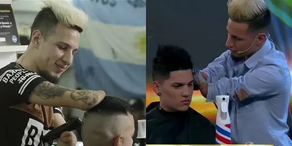 അര്ജന്റീനയന് തലസ്ഥാനമായ ബ്യൂണസ് അയേഴ്സിനടുത്താണ് ഈ വ്യത്യസ്തനായ ബാര്ബര്. ജന്മനാ രണ്ട് കൈകളുമില്ലാത്ത 21 കാരന് ഗബ്രിയേല് ഹെറേഡിയ ആണ് വ്യത്യസ്തനായ ബാര്ബര് ദിനേനേ നിരവധി ആളുകളാണ് ഇദ്ദേഹത്തെ തേടി എത്തുന്നത് . തന്റെ ഉപഭോക്താക്കള് ആവശ്യപ്പെടുന്ന രീതിയില് ഇദ്ദേഹം അവരുടെ മുടി മുറിച്ച് നല്കുന്നു.