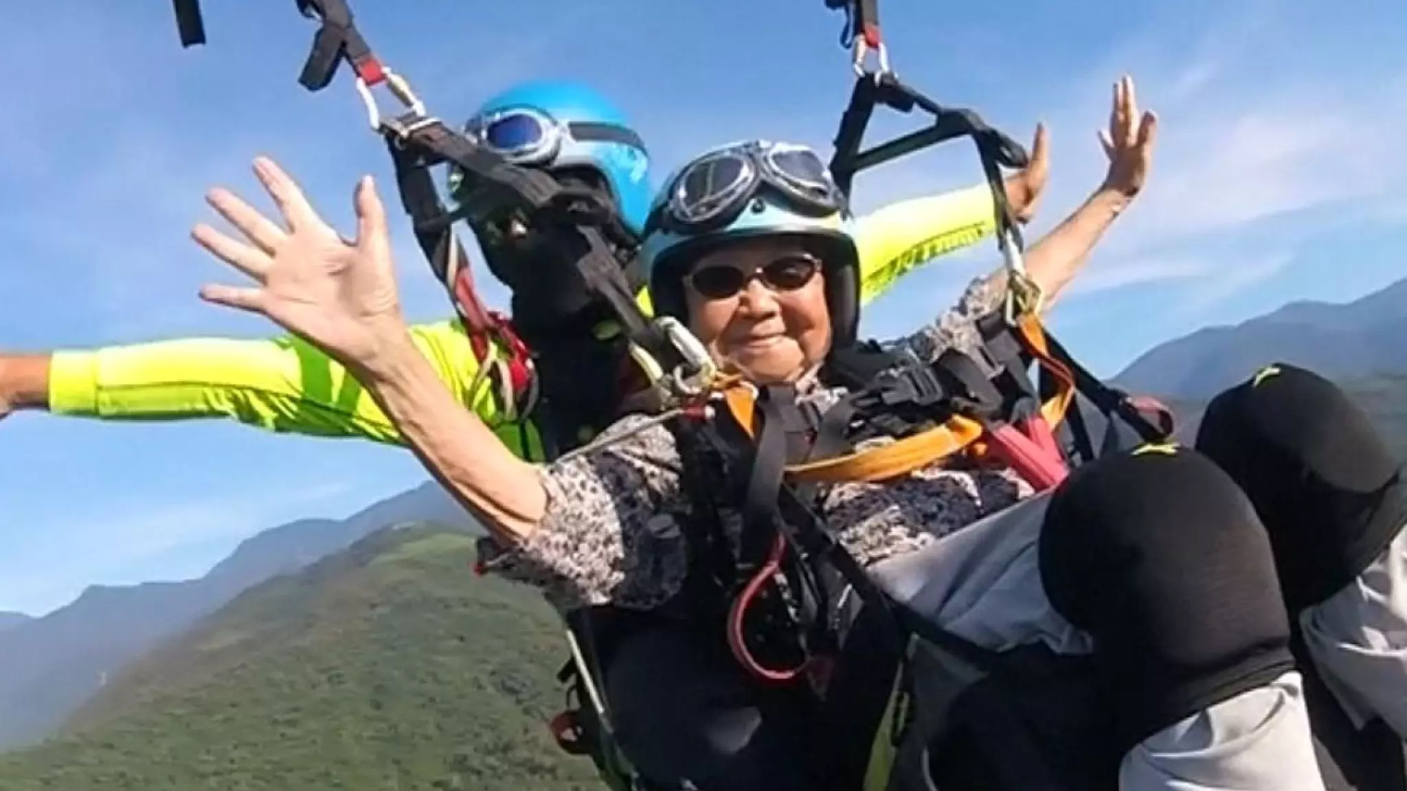 |വാര്ധക്യത്തെ പോലും വകവെക്കാതെ പാരാഗ്ലൈഡിങ് നടത്തുന്ന ഒരു അമ്മൂമ്മയുണ്ട് അങ്ങ് തായ്വാനില്. 93 വയസുകാരിയായ ഈ അമ്മൂമ്മ തായ്വാനിലെ ഏറ്റവും പ്രായം കുടിയ പാരാഗ്ലൈഡറാണ്.
