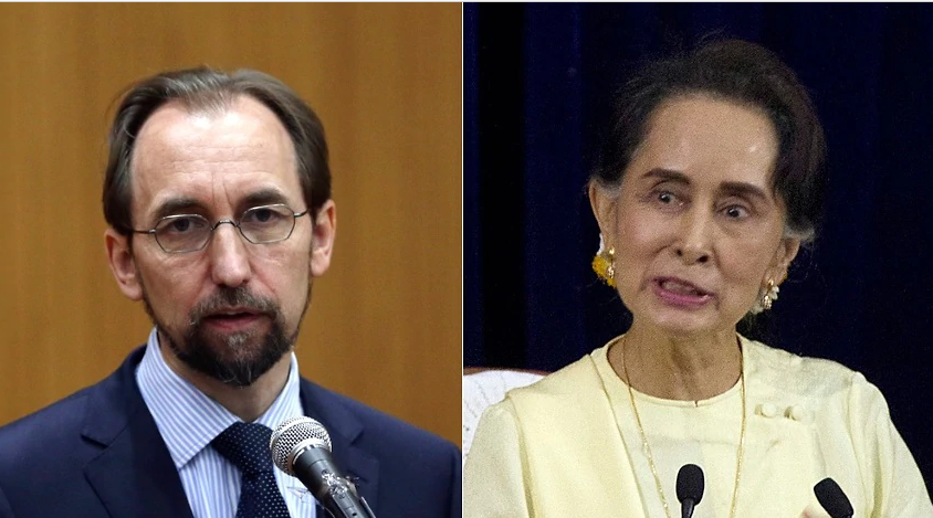 |മ്യാന്മര് സൈന്യത്തെ ന്യായീകരിച്ച സാഹചര്യത്തിലാണ് ഐക്യരാഷ്ട്ര സഭ മനുഷ്യാവകാശ കമ്മീഷന് ഹൈക്കമ്മീഷണര് സൈദ് റാഇദ് അല് ഹുസൈന് സൂകിക്കെതിരെ രംഗത്തെത്തിയത്