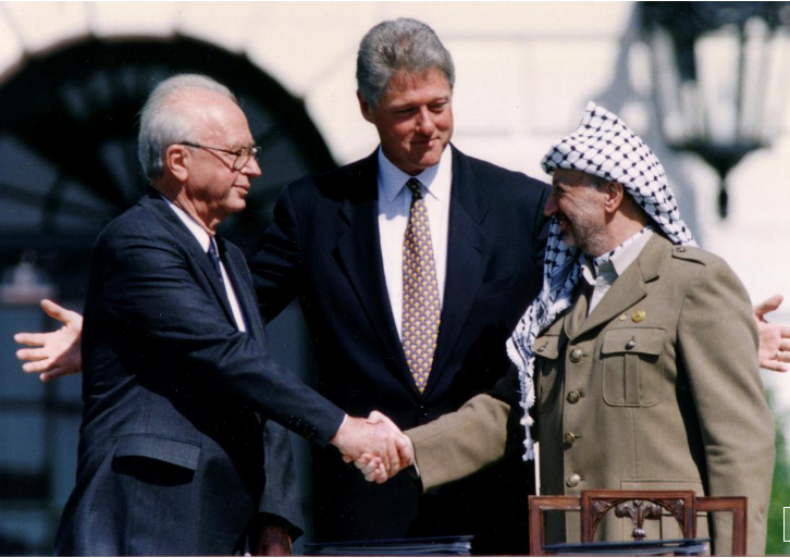 |1993 സെപ്തബര് 13ന് വാഷിംങ്ടണില് വെച്ച് അന്നത്തെ ഇസ്രായേല് പ്രധാനമന്ത്രി ഇസ്ഹാഖ് റബീനും ഫലസ്തീന് ലിബറേഷന് ഓര്ഗനൈസേഷന് നേതാവ് യാസര് അറഫാത്തുമായിരുന്നു ഓസ്ലോ കരാര് ഒപ്പുവെച്ചത്.
