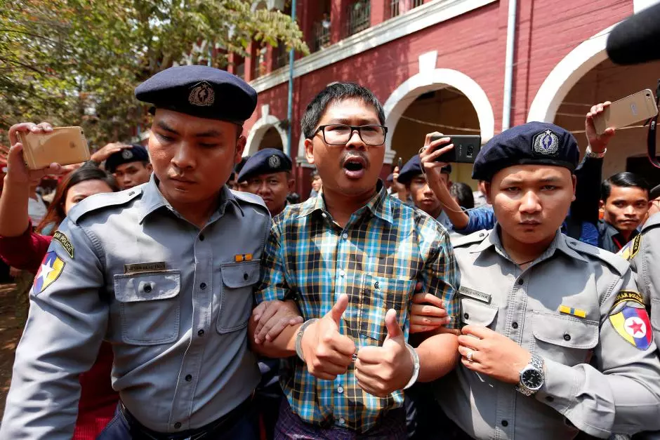 |റോഹിങ്ക്യന് മുസ്ലിംകള്ക്കെതിരേ മ്യാന്മര് സൈന്യം നടത്തിയ വംശഹത്യയുമായി ബന്ധപ്പെട്ട വാര്ത്തകള് റിപ്പോര്ട്ട് ചെയ്ത രണ്ട് മാധ്യമപ്രവര്ത്തകരെയാണ് മ്യാന്മാര് കോടതി ജയില് ശിക്ഷക്ക വിധിച്ചിട്ടുള്ളത്