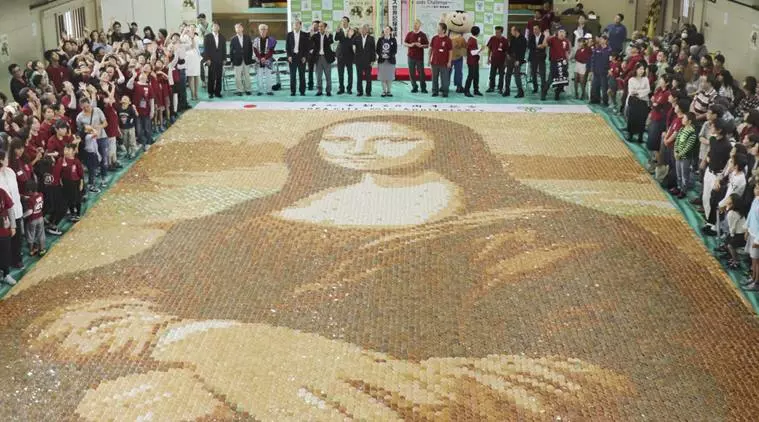 ജപ്പാനിലെ സോകയില് ഡാവിഞ്ചിയുടെ ഇതിഹാസ ചിത്രം മോണാലിസക്ക് പുനര്ജന്മം.സോകയിലെ ഒരു ജിംനേഷ്യത്തിലായിരുന്നു 13 മീറ്റര് നീളവും 9 മീറ്റര് വീതിയിലും 24000 ഇനം ഭക്ഷ്യധാന്യങ്ങളുപയോഗിച്ച് ചിത്രം നിര്മ്മിക്കപ്പെട്ടത്. സോയാ സോസ്, തേയില, പഞ്ചസാര എന്നിവ ചേര്ത്ത് ഏഴ് വൈവിധ്യമാര്ന്ന നിറങ്ങളില് പ്രദര്ശിപ്പിക്കപ്പെട്ട ചിത്രം കാണികള്ക്ക് ദൃശ്യവിരുന്നൊരുക്കി.