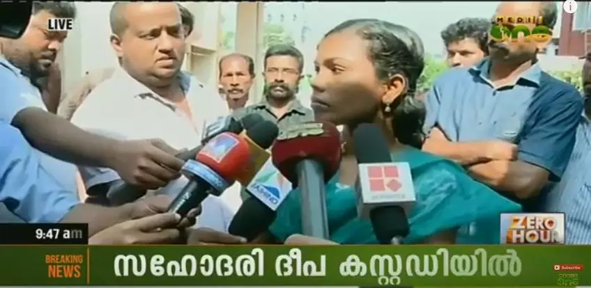 അതേസമയം തന്നെ ചോദ്യം ചെയ്യാന് കൊണ്ടു പോയതല്ലെന്ന് ദീപ പറഞ്ഞു. വീട്ടില് നിന്ന് വസ്ത്രങ്ങളും ബാങ്ക് പാസ്ബുക്കും എടുക്കാനാണ് പോയത്. അയല്വാസികളില്നിന്ന് ബുദ്ധിമുട്ടുകള് ഉണ്ടായിട്ടുണ്ട്. പൊലീസ് ഇത് നല്ല രീതിയില് അന്വേഷിക്കുന്നുമുണ്ടെന്നും ദീപ പ്രതികരിച്ചു.