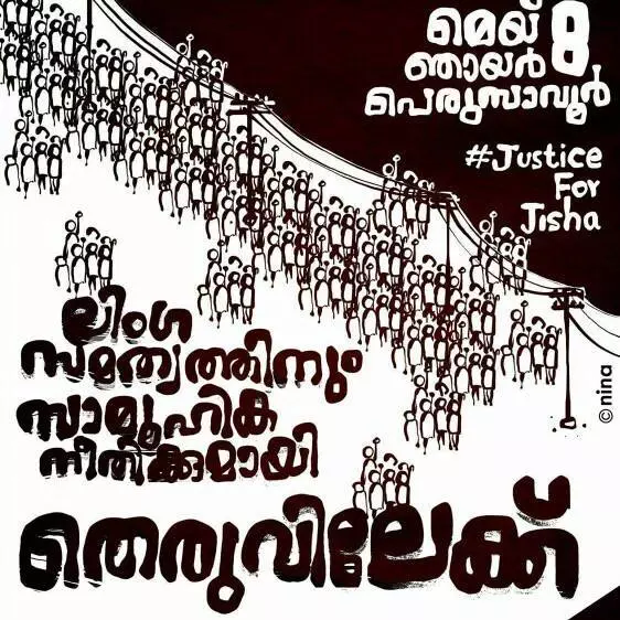 ജിഷയുടെ കൊലപാതകത്തില് നീതിപൂര്വ്വമായ അന്വേഷണം നടത്തുക, കുറ്റക്കാരായ പോലീസുകാര്ക്കെതിരെ കേസ് എടുക്കുക, ഭരണകൂടത്തിന്റെ ജാതിവെറി അവസാനിപ്പിക്കുക തുടങ്ങിയ മുദ്രാവക്യങ്ങളുയര്ത്തി പെരുമ്പാവൂര് ഡിവൈഎസ്പി ഓഫീസ് ഉപരോധിച്ച സ്ത്രീകള്ക്കു നേരെയാണ് പോലീസ് അതിക്രമം. 13 സ്ത്രീകളെയും മൂന്ന് ട്രാന്സ്ജെന്ജേഴ്സിനെയുമാണ് പെരുമ്പാവൂര് പോലീസ് അറസ്റ്റ് ചെയ്തത്. ലിംഗ സമത്വത്തിനും സാമൂഹ്യനീതിക്കുമായി തെരുവിലേക്ക് എന്ന മുദ്രാവാക്യം ഉയര്ത്തിയായിരുന്നു മാര്ച്ച്.