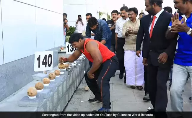 ഒരു മിനുറ്റില് 122 തേങ്ങ കൈ കൊണ്ട് പൊട്ടിച്ച് മലയാളി ഗിന്നസ് ബുക്കില്