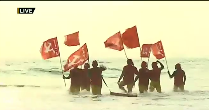 അവകാശങ്ങള് നേടിയെടുക്കുന്നതിനായി പലതരം സമരങ്ങള്ക്ക് നാം സാക്ഷിയായിട്ടുണ്ട്.എന്നാല് കടലില് ഇറങ്ങിയുളള ഒരു സമര കാഴ്ച അപൂര്വ്വ മായിരിക്കും. കണ്ണൂര് പയ്യാമ്പലം ബീച്ചിലെ ലൈഫ് ഗാര്ഡുമാരാണ് വിവിധ ആവശ്യങ്ങള് ഉന്നയിച്ച് ഇന്നലെ കടല് ശയനസമരം നടത്തി പ്രതിഷേധിച്ചത്.