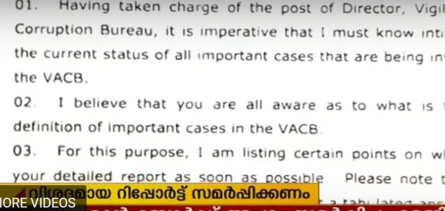 സുപ്രധാന കേസുകളുടെ റിപ്പോര്ട്ടു തേടി വിജിലന്സ് ഡയറക്ടറുടെ കത്ത്
