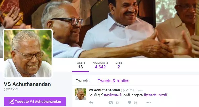 വഴിമുട്ടിയ ബിജെപിക്ക് വഴി കാട്ടാന് ഉമ്മന്ചാണ്ടി: വിഎസ്