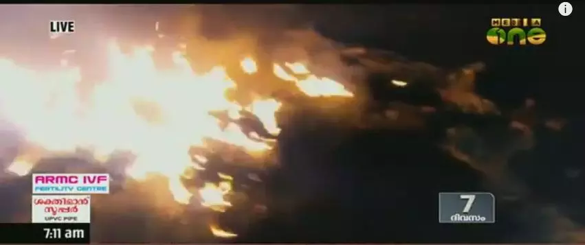 |പിണറായിയുടെ ജീവിതം വിവരിക്കുന്ന 3000 അടി നീളമുള്ള ഫ്ലക്സാണ് ഇന്ന് പുലര്ച്ചെ തീയിട്ട് നശിപ്പിച്ചത്.
