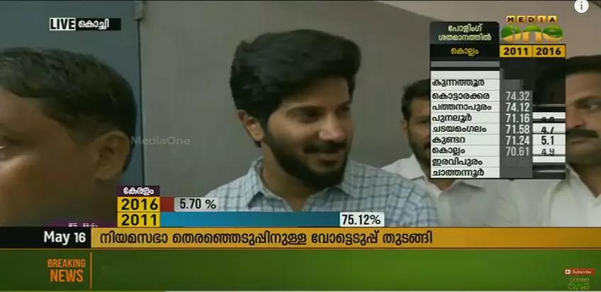 യുവാക്കള് വോട്ട് ചെയ്യണമെന്ന ആഹ്വാനവുമായി ദുല്ഖര് വോട്ട് രേഖപ്പെടുത്തിKerala