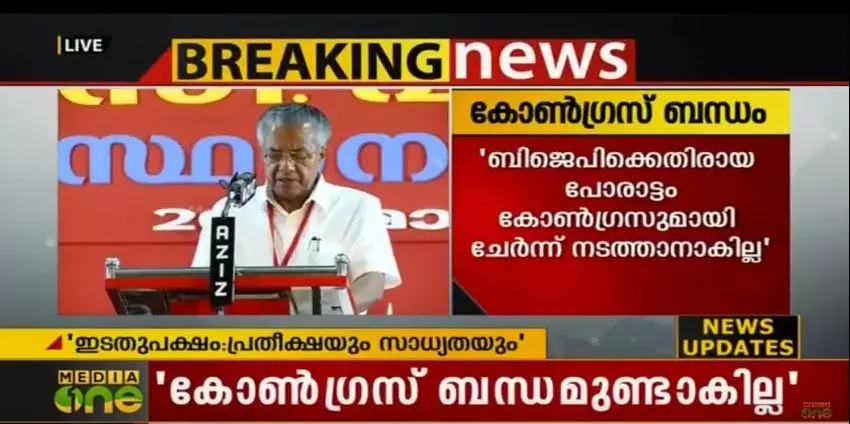 ബിജെപിക്കെതിരായ പോരാട്ടം കോണ്ഗ്രസുമായി ചേര്ന്ന് നടത്താനാകില്ലെന്ന് മുഖ്യമന്ത്രി