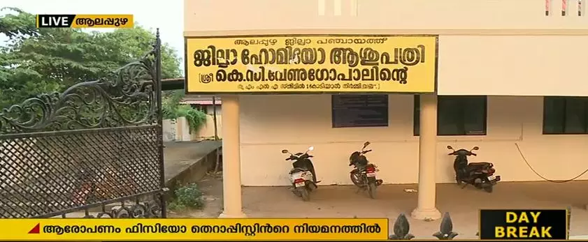 ആലപ്പുഴ ജില്ലാ ഹോമിയോ ആശുപത്രിയിലെ ജെറിയാട്രിക് കെയര് സെന്ററില് ഫിസിയോ തെറാപ്പിസ്റ്റിനെ നിയമിക്കുന്നതിനുള്ള കൂടിക്കാഴ്ച കഴിഞ്ഞ ഒക്ടോബര് 17നാണ് നടന്നത്. കൂടിക്കാഴ്ചയ്ക്ക് ശേഷം റാങ്ക് ലിസ്റ്റ് പുറത്തു വന്നപ്പോള് സര്ക്കാര് സ്ഥാപനങ്ങളില് തന്നെ വര്ഷങ്ങളുടെ പ്രവൃത്തി പരിചയമുള്ളവരും വയോജന ക്ഷേമ പരിപാടികളില് പ്രവര്ത്തിച്ച് പരിചയമുള്ളവരുമൊക്കെ പിറകിലും കോഴ്സ് കഴിഞ്ഞ് മാസങ്ങള് മാത്രം പിന്നിട്ടയാള് ലിസ്റ്റില് ഏറ്റവും മുന്നിലുമായിരുന്നു. റാങ്ക് ലിസ്റ്റില് ഏറ്റവും മുന്നിലുള്ളയാളെ നിയമിക്കുകയും ചെയ്തു.ഇതു സംബന്ധിച്ചാണ് ആരോപണമുയര്ന്നിട്ടുള്ളത്.