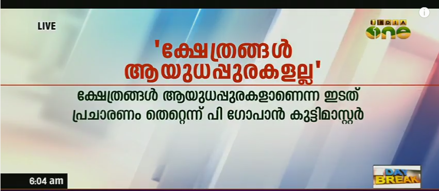 ക്ഷേത്രങ്ങള് ആയുധപ്പുരകളാണെന്ന ഇടത് സര്ക്കാര് പ്രചാരണം ഹിന്ദുവിശ്വാസങ്ങളെ തര്ക്കാനുള്ളതാണെന്ന് ആര്എസ്എസ്