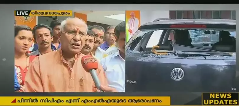 ഒ രാജഗോപാലിന്റെ ഓഫീസിന് നേരെ അക്രമം; കാര് അടിച്ചുതകര്ത്തു