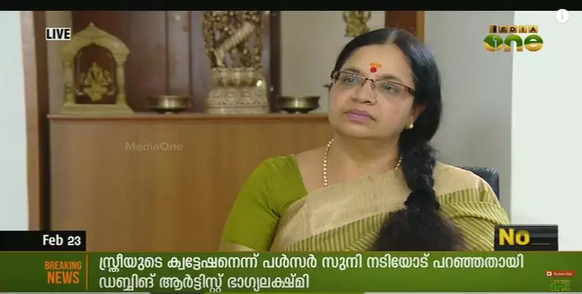 ക്വട്ടേഷന് സ്ത്രീയുടേതെന്ന് പള്സര് സുനി നടിയോട് പറഞ്ഞു: ഭാഗ്യലക്ഷ്മിക്വട്ടേഷന് സ്ത്രീയുടേതെന്ന് പള്സര് സുനി നടിയോട് പറഞ്ഞു: ഭാഗ്യലക്ഷ്മി
