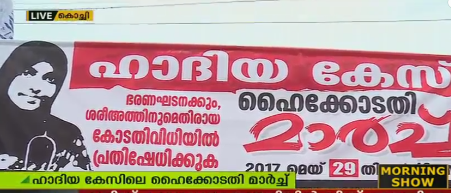 മെയ് 29നാണ് ഹാദിയ കേസുമായി ബന്ധപ്പെട്ട് മുസ്ലീം ഏകോപന സമിതി ഹൈക്കോടതിയിലേക്ക് മാര്ച്ച് നടത്തിയത്. മാര്ച്ച് ബാനര്ജി റോഡില് പൊലീസ് തടയുകയായിരുന്നു. ഇസ്ലാം മതം സ്വീകരിച്ച യുവതിയുടെ വിവാഹം റദ്ദ് ചെയ്തുകൊണ്ട് കൊണ്ട് ഹൈക്കോടതി ഉത്തരവിട്ടിരുന്നു. വിവാഹത്തിന് മാതാപിതാക്കളുടെ സാന്നിധ്യമില്ലെന്നായിരുന്നു ഡിവിഷന് ബെഞ്ചിന്റെ ഉത്തരവ്.