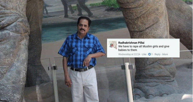 ‘മുസ്ലിം പെണ്കുട്ടികളെയെല്ലാം ബലാത്സംഗം ചെയ്ത് കുട്ടികളെ നല്കണം’ സോഷ്യല്മീഡിയയില് മലയാളിയുടെ ആഹ്വാനം