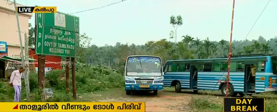 വയനാട് അതിര്ത്തിയില് തമിഴ്നാട് ടോള് പിരിവ് പുനരാരംഭിച്ചു; പ്രതിഷേധം ശക്തംവയനാട് അതിര്ത്തിയില് തമിഴ്നാട് ടോള് പിരിവ് പുനരാരംഭിച്ചു; പ്രതിഷേധം ശക്തം