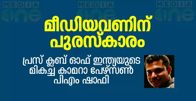 പ്രസ്ക്ലബ്ബ് ഓഫ് ഇന്ത്യയുടെ പ്രഥമ വീഡിയോ ജേര്ണലിസ്റ്റ് ഓഫ് ദി ഇയര് പുരസ്കാരം മീഡിയാവണ് കാമറാ പേര്സണ് പി.എം ഷാഫിക്ക്. ഡല്ഹിയില് പ്രസ്ക്ലബ്ബില് നടന്ന പുരസ്കാര പ്രഖ്യാപനവിതരണ ചടങ്ങില് ഷാഫിയുടെ അഭാവത്തില് റിപ്പോര്ട്ടര് ടി.കെ റാഷിദ് കേന്ദ്രമന്ത്രി ജുവല് ഓറത്തില് നിന്ന് അവാര്ഡ് ഏറ്റുവാങ്ങി. ശൈത്യകാലത്ത് ഡല്ഹിയിലെ തെരുവുകളില് കഴിയുന്നവരുടെ ജീവിതം പകര്ത്തിയ വാര്ത്തയുടെ ദൃശ്യങ്ങള്ക്കാണ് പുരസ്കാരം. ആജ്തക് കാമറാമാന് ആയിരുന്ന രാജീവ് ശ്രീവാസ്തയുടെ സ്മരാണാര്ത്ഥമാണ് പുരസ്കാരം ഏര്പെടുത്തിയത്.