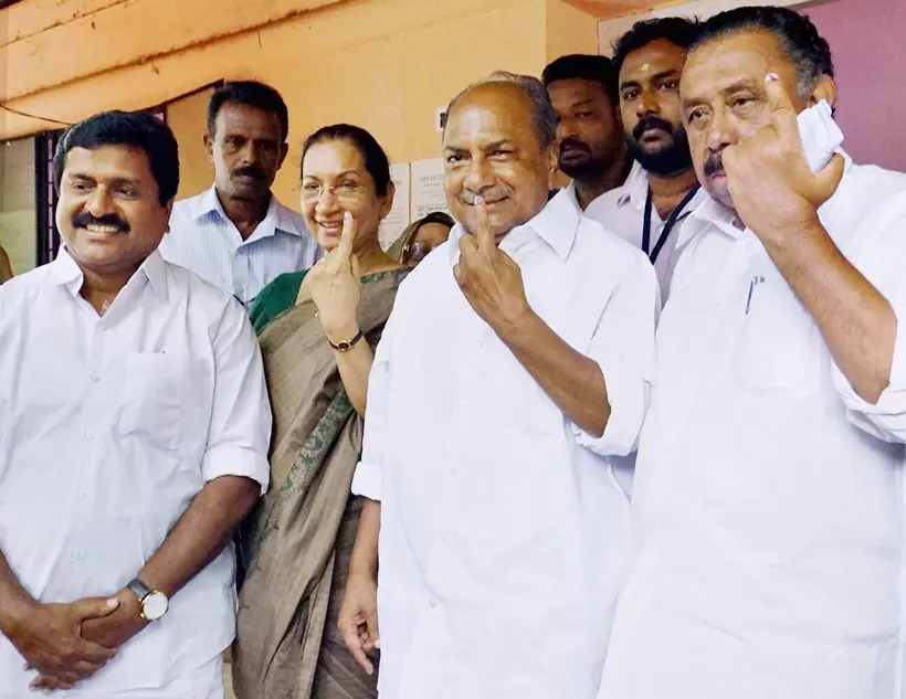 മണ്ഡല പര്യടനത്തിന് ശേഷം പത്തരയോടെ വന് സംഘമായാണ് മുഖ്യമന്ത്രി കോട്ടയം പുതുപ്പള്ളി പള്ളി സ്കൂളില് എത്തിയത്. കെ പി സി സി പ്രസിഡന്റ് വി എം സുധീരന് വോട്ടുചെയ്തത് തിരുവനന്തപുരം കുന്നുകുഴി എല്.പി സ്കൂളില്. പാണക്കാട് ജി എച്ച് എസ് സ്കൂളിലെ ആദ്യ വോട്ടറെന്ന പതിവ് പാണക്കാട് ഹൈദരലി ശിഹാബ് തങ്ങളും തെറ്റിച്ചില്ല. പികെ കുഞ്ഞാലിക്കുട്ടിയും തങ്ങള്ക്കൊപ്പമെത്തി.