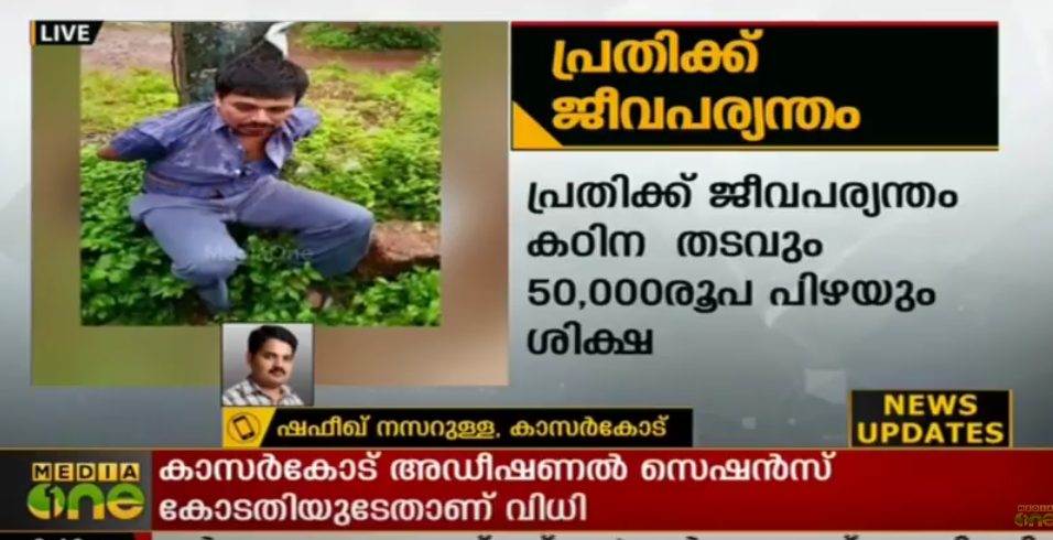 |കാസര്കോട് അഡീഷണല് സെഷന്സ് കോടതിയുടേതാണ് വിധി. IPC 341,302 വകുപ്പുകള് പ്രകാരമാണ് ശിക്ഷ. കേസില് ഇരിയ സ്വദേശി കണ്ണോത്ത് വിജയൻ കുറ്റക്കാരനാണെന്ന്..