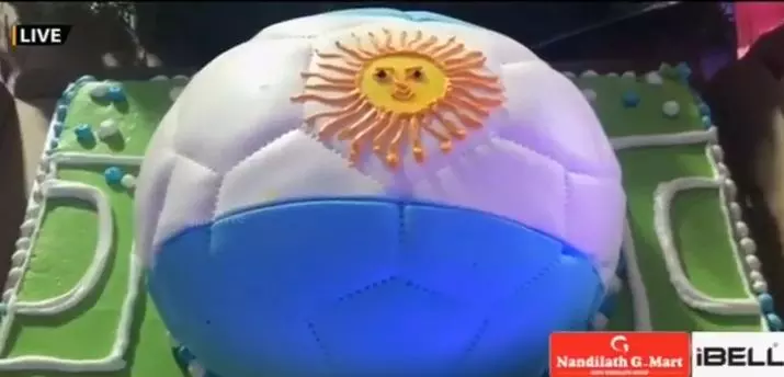 |കല്യാണത്തിന്റെ മുഴുവന് ചടങ്ങുകളും നീലയും വെള്ളയും നിറത്തില് മുങ്ങി. കുടിക്കാനുള്ള വെള്ളത്തിലും വിവാഹകേക്കിലുമെല്ലാം അര്ജന്റീനിയന് ആധിപത്യം.