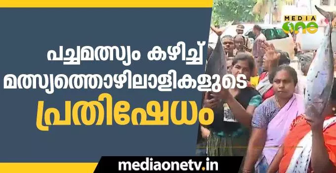 പച്ചമീന് കഴിച്ച് മത്സ്യത്തൊഴിലാളികളുടെ പ്രതിഷേധം
