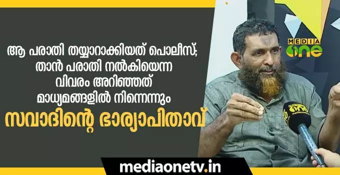 ആ പരാതി തയ്യാറാക്കിയത് പൊലീസ്; താന് പരാതി നല്കിയെന്ന വിവരം അറിഞ്ഞത് മാധ്യമങ്ങളില് നിന്നെന്നും സവാദിന്റെ ഭാര്യാപിതാവ്