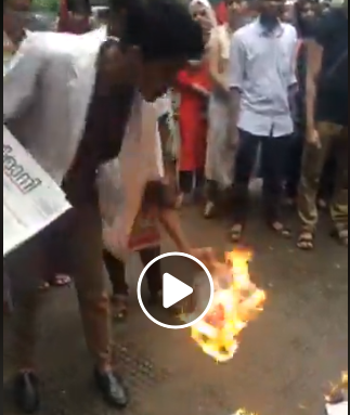 ദേശാഭിമാനിക്കെതിരെ മുദ്രാവാക്യം മുഴക്കിയായിരുന്നു വിദ്യാര്ത്ഥികള് പത്രം കത്തിച്ചത്. കോഴിക്കോട് മെഡിക്കല് കോളേജ് വിദ്യാര്ത്ഥി യൂണിന്റെ ഫേസ്ബുക്ക് പേജിലൂടെ ലൈവായിട്ടായിരുന്നു വിദ്യാര്ത്ഥികളുടെ പ്രതിഷേധം. മഞ്ഞപത്രങ്ങള് ഇതിലും ഭേദമാണെന്നും മതവര്ഗീയത കുത്തിനിറക്കാന് വരുന്നവര്ക്ക് ഇവിടെ സ്ഥാനമില്ലെന്നും വിദ്യാര്ത്ഥികള് പറഞ്ഞു.
