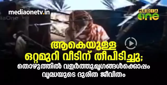 ആകെയുള്ള ഒറ്റമുറി വീടിന് തീപിടിച്ചു; തൊഴുത്തില് വളര്ത്തുമൃഗങ്ങള്ക്കൊപ്പം വൃദ്ധയുടെ ദുരിത ജീവിതം