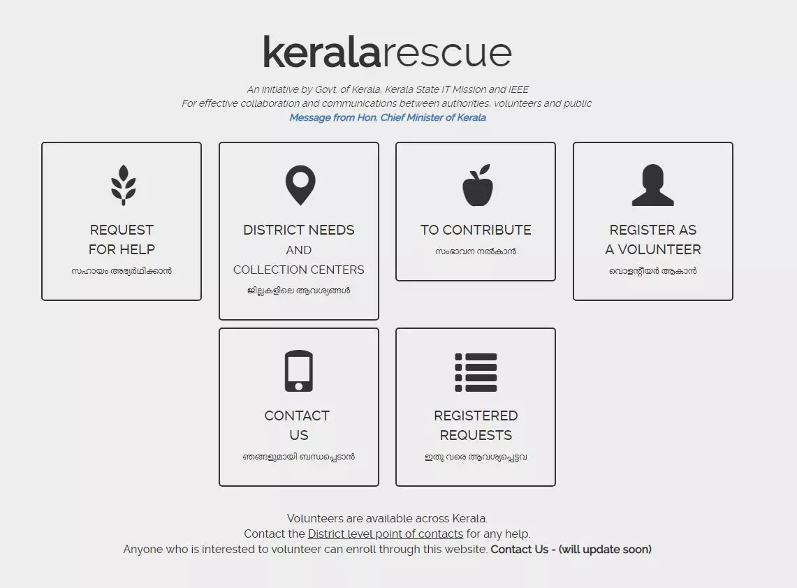മഴക്കെടുതിയില് ദുരിതാശ്വാസ പ്രവർത്തനങ്ങൾ ഏകോപിപ്പിക്കാന് കേരള സർക്കാറിന്റെ പുതിയ വെബ്സൈറ്റ്. ഏതെങ്കിലും പ്രദേശത്ത് ദുരിതമനുഭവിക്കുന്നവരെ ശ്രദ്ധയില് പെട്ടാല് ആര്ക്കും സൈറ്റ് വഴി ബന്ധപ്പെടാം.