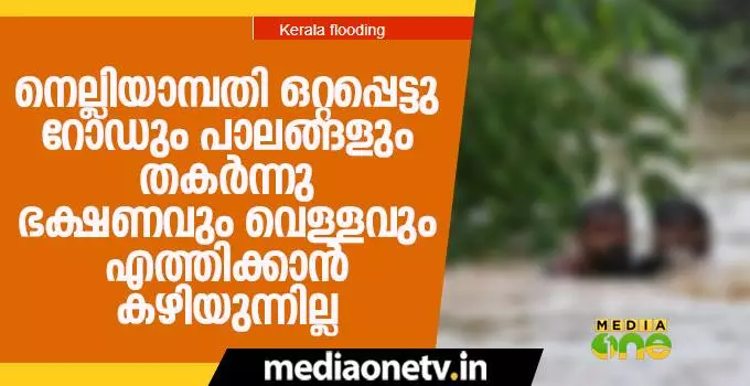 നെല്ലിയാമ്പതി പൂര്ണമായും ഒറ്റപ്പെട്ടിരിക്കുകയാണ്. ഉരുള്പൊട്ടലിനെ തുടര്ന്ന് ഇവിടേക്കുള്ള റോഡും പാലവും ഒലിച്ചുപോയി. നെല്ലിയാമ്പതി ചുരത്തില് 40ല് അധികം സ്ഥലത്താണ് ഉരുള്പൊട്ടിയത്.