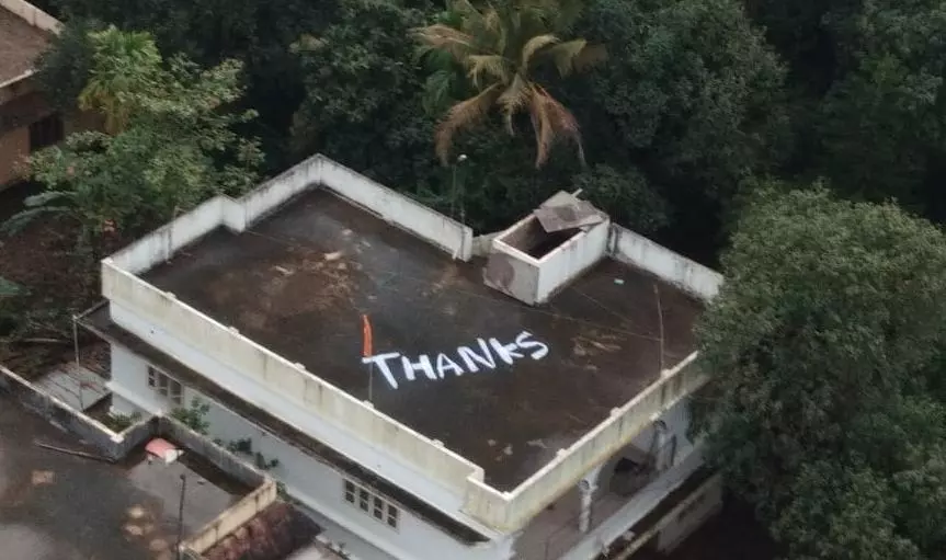 പ്രളയത്തില് നിന്ന് രക്ഷിച്ച നാവികസേന ഉദ്യോഗസ്ഥര്ക്ക് ടെറസില് നന്ദിയെഴുതി മലയാളികള്