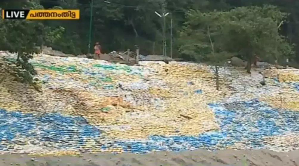 |പ്രളയ ശേഷം പമ്പ മണപ്പുറത്ത് അടിഞ്ഞുകൂടിയ മണ്ണ് പൂര്ണമായി നീക്കം ചെയ്യാനായില്ല. അവശേഷിക്കുന്നത് നിരത്തി ഭക്തര്ക്കായുള്ള സ്നാനഘട്ടങ്ങള് മണല്ചാക്ക് നിരത്തി നിര്മിച്ചു.