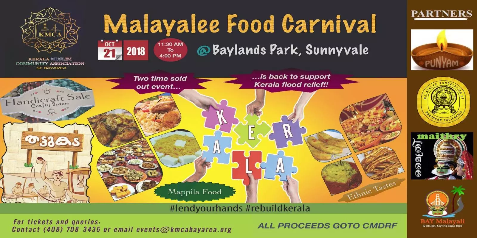 മുഖ്യമന്ത്രിയുടെ പ്രളയ ദുരിതാശ്വാസ നിധിയിലേക്കുള്ള ധനശേഖരണാർത്ഥം, നോർത്ത് കാലിഫോർണിയയിലെ മലയാളി മുസ്ലികളുടെ സംഘടനയായ കെ.എം.സി.എ (KMCA) മറ്റു മലയാളി സംഘടനകളായ പുണ്യം, മങ്ക, മൈത്രി തുടങ്ങിയവുമായി ചേർന്ന് സംഘടിപ്പിക്കുന്ന "മലയാളീ ഫുഡ് ഫെസ്റ്റിവൽ" Oct 21-ന് സണ്ണിവെയ്ൽ ബേലാൻഡ്സ് പാർക്കിൽ വെച്ച് നടക്കുന്നു. സമീപകാല കേരളം കണ്ടിട്ടില്ലാത്ത പ്രളയദുരന്തത്തിൽ അകപ്പെട്ട മലയാളികളുടെ നവകേരള പുനർനിർമാണത്തിനു മറ്റു ലോക മലയാളി സംഘടനകളോടൊപ്പം കെ.എം.സി.എയും കൈകോർക്കുകയാണ്. ഇതാദ്യമായാണ് സാൻ ഫ്രാൻസിസ്കോ ബേ ഏരിയ കേന്ദ്രികരിച്ചു പ്രവർത്തിക്കുന്ന മലയാളി സംഘടനകൾ സംയുക്തമായി ഇത്തരമൊരു ഉദ്യമത്തിന് തയ്യാറാകുന്നതെന്നതും ശ്രദ്ധേയമാണ് . മലബാറും തിരുവിതാംകൂറും മധ്യകേരളവും ഉൾപ്പെടുന്ന മലയാളികളുടെ രുചിഭേദങ്ങളുടെ വത്യസ്തത തന്നെയാണ് മലയാളി ഫുഡ് കാർ ണിവലിന്റെ ആകർഷണീയത. വിവിധ പാരമ്പര്യ വിഭവങ്ങളുടെ അപൂർവതകളോടൊപ്പം തികച്ചും പ്രാദേശികമായ രുചികളുടെ ഉത്സവമായി മാറുകയാണ് "മലയാളി ഫുഡ് കാർണിവൽ". കല്ലുമ്മക്കായ, മുട്ടമാല, തുർക്കിപത്തിരി, തലശ്ശേരി ബിരിയാണി, ഇറച്ചിപ്പത്തിരി, കായ്പോള തുടങ്ങിയ മലബാർ വിഭവങ്ങൾക്കൊപ്പം മധ്യകേരളത്തിലെ പ്രശസ്തമായ കോട്ടയം മീൻകറി, മാങ്ങാകറി മുതൽ തെക്കൻ കേരളത്തിലെ വിഭവങ്ങളായ ബോളി, പായസം തുടങ്ങിയവയും തയ്യാറാക്കുന്നുണ്ട്. അമ്പതില്പരം കൗണ്ടറുകളിലൂടെ രണ്ടായിരത്തിലധികം ആളുകളെ പ്രതീക്ഷിക്കുന്ന ഭഷ്യമേളയിൽ കുട്ടികൾക്കായി പ്രത്യേക വിഭവങ്ങളും വിനോദ പരിപാടികളും തയ്യാറാക്കുന്നുണ്ട്. മേളയിൽ പങ്കെടുക്കുന്നതിനായുള്ള റജിസ്ട്രേഷനോ കൂപ്പണുകൾക്കോ (408) 708-3435 എന്ന നമ്പറിൽ ബന്ധപ്പെടാവുന്നതാണ്.