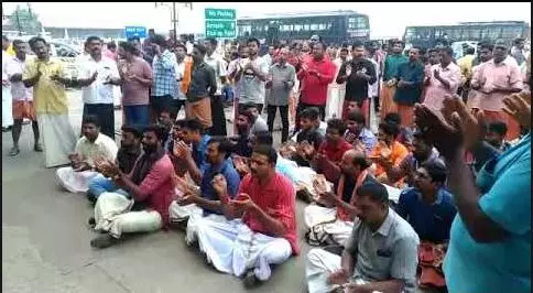 നെടുമ്പാശ്ശേരിയില് സമരം തുടരുന്നത് വിമാനത്താവളത്തിന്റെ പ്രവര്ത്തനത്തെ ബാധിക്കുന്നുവെന്ന് സിയാല് അധികൃതര് അറിയിച്ചു. തൃപ്തി ദേശായിയെയോ പ്രതിഷേധക്കാരെയോ നീക്കം ചെയ്യണമെന്ന് സിയാല് അധികൃതര് പൊലീസിനോട് ആവശ്യപ്പെട്ടു.