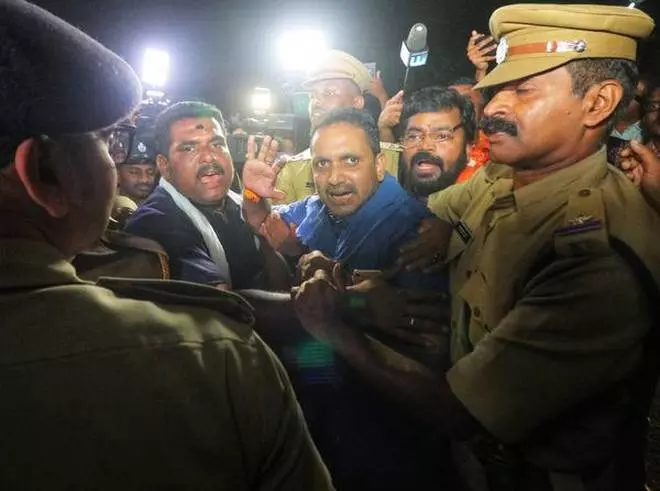 നിശ്ചിത നേതാക്കളെ പൊലീസ് നിയന്ത്രണങ്ങള്ക്ക് വിധേയമാകേണ്ടി വരുമെന്ന പൊലീസ് നടപടിയെത്തുടര്ന്നാണ് സുരേന്ദ്രനെ തടഞ്ഞത്. എന്ത് വന്നാലും സന്നിധാനത്തെത്തുമെന്ന് സുരേന്ദ്രന് പറഞ്ഞിരുന്നു.