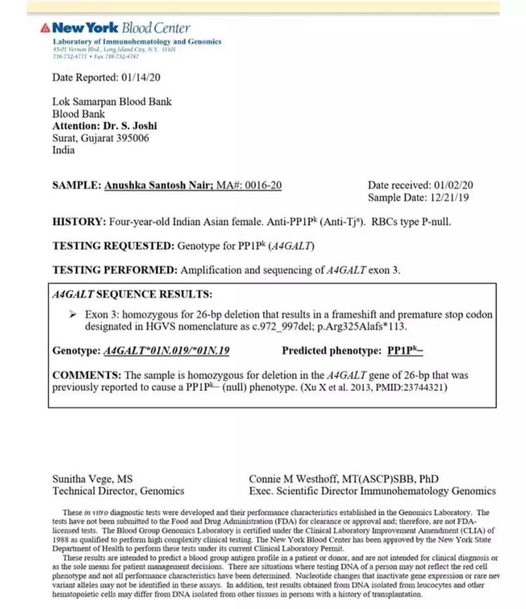 |അമൃത ആശുപത്രിയില് ചികിത്സയിലുള്ള അനുഷ്ക സന്തോഷ് എന്ന കുഞ്ഞിനാണ് പിപി അഥവാ ‘പി നള്’ ഫെനോടൈപ്പ് രക്ത ഗ്രൂപ്പ് ആവശ്യമായിട്ടുള്ളത്.