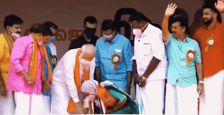 എൻ.ഡി.എ സ്ഥാനാർത്ഥി നസീമയുടെ കാല് തൊട്ട് വന്ദിച്ച് പ്രധാനമന്ത്രി നരേന്ദ്ര മോദി