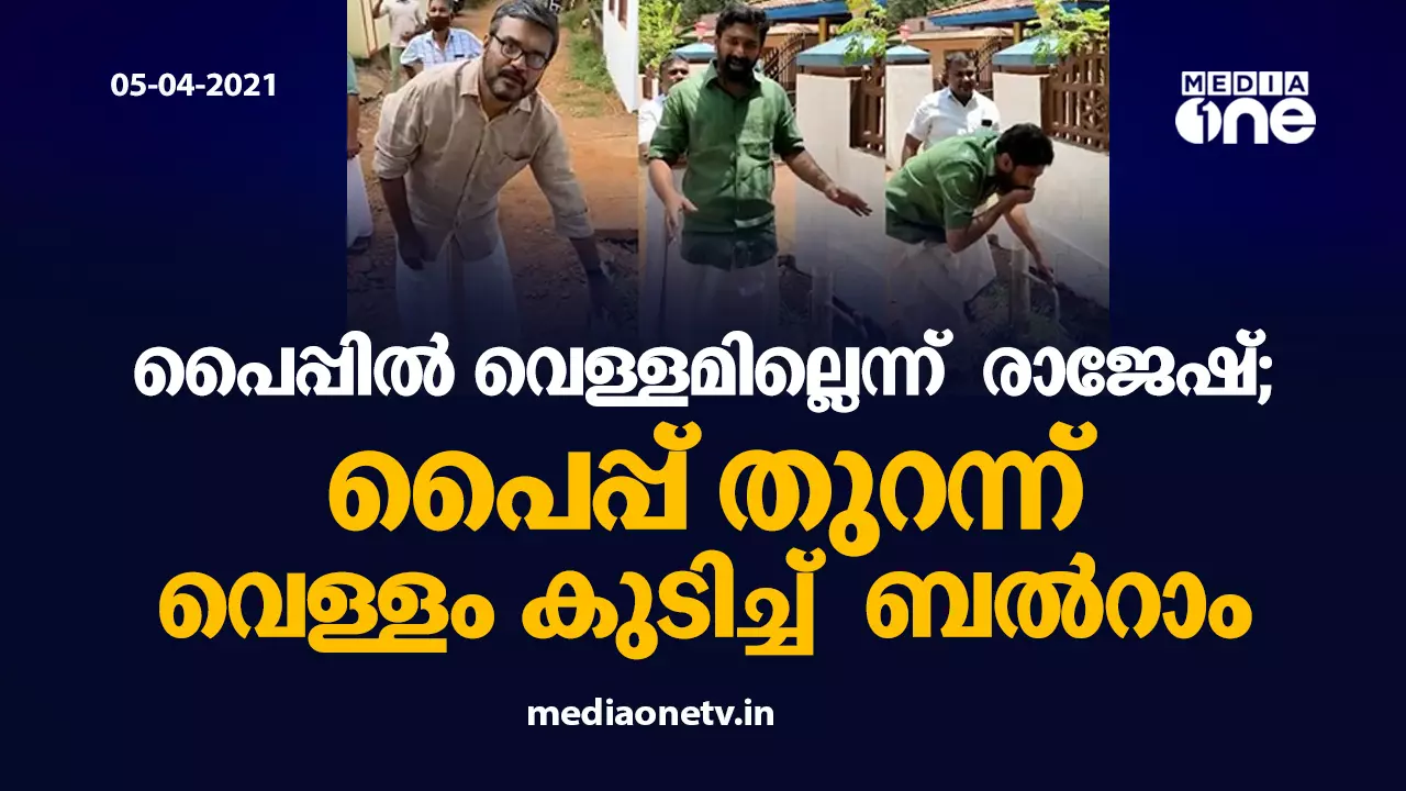 |മണ്ഡലത്തിലെ ഒരു പഞ്ചായത്ത് പൈപ്പ് തുറന്ന് രാജേഷ് അതിൽ വെള്ളമില്ലെന്ന് കാണിച്ചു കൊടുത്തായിരുന്നു സംഭവങ്ങളുടെ തുടക്കം.