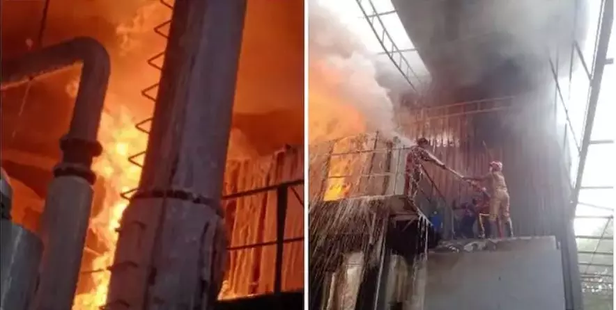 അമ്പലപ്പാറ തോട്ടുക്കാട് മലയിൽ പ്രവർത്തിക്കുന്ന കോഴി മാലിന്യ സംസ്കരണ യൂണിറ്റിൽ തീപിടുത്തമുണ്ടായത്