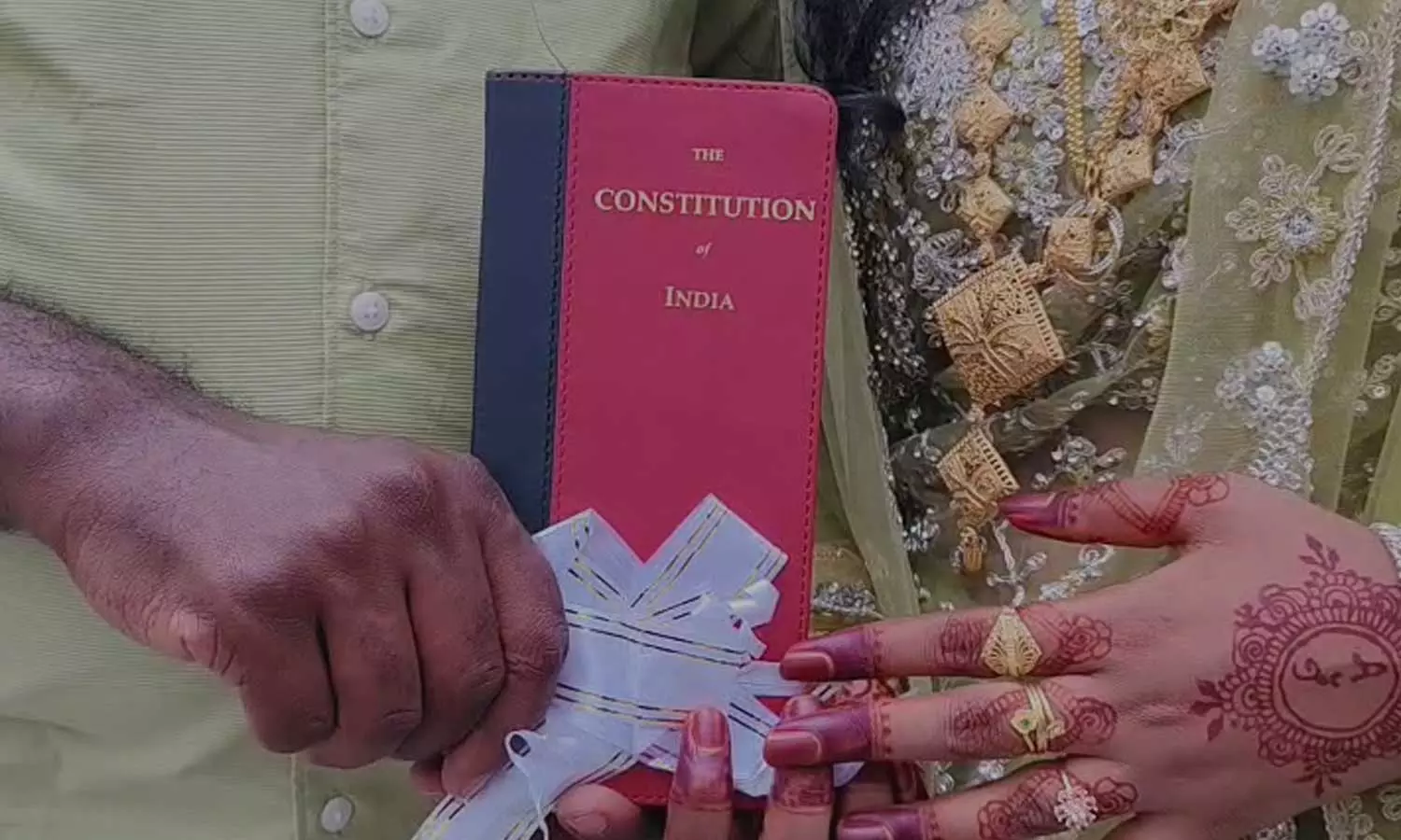 ഭരണ ഘടന കൈമാറി, ദേശീയ ഗാനത്തോടെ അവസാനിപ്പിച്ചു; വ്യത്യസ്തമായൊരു വിവാഹം