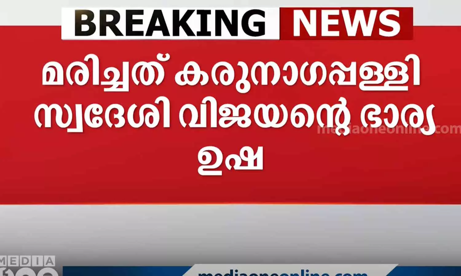 കരുനാഗപ്പള്ളി ആദിനാട് കണ്ടത്തിൽതറയിൽ വിജയന്റെ ഭാര്യ ഉഷയാണ് മരിച്ചത്.