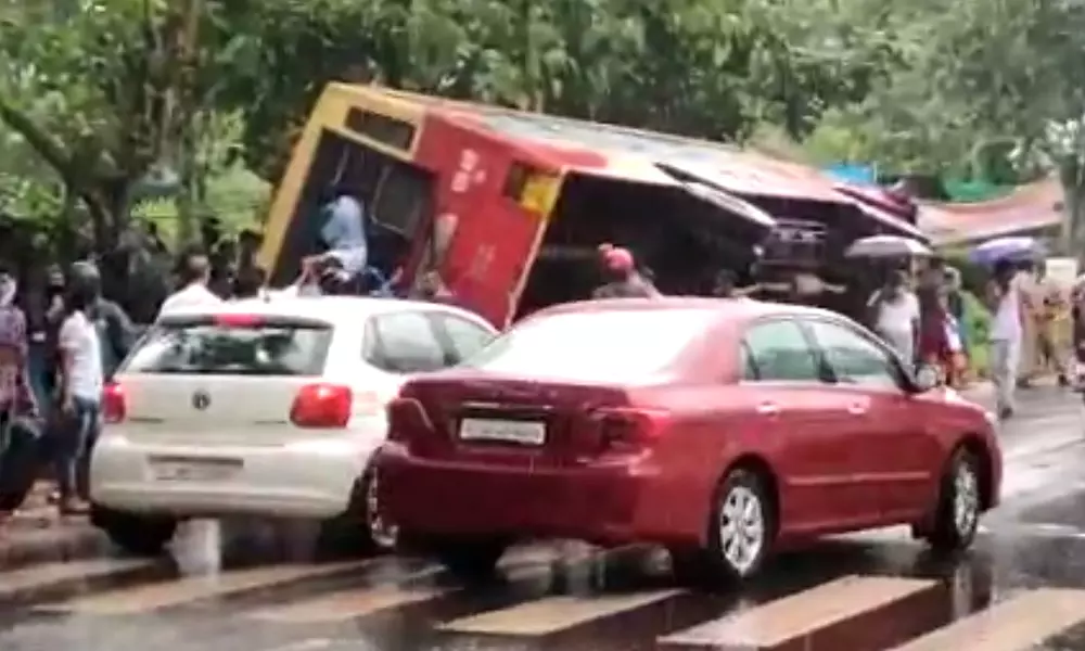 കുന്ദമംഗലത്ത് കെഎസ്ആർടിസി ബസ് നിയന്ത്രണം വിട്ട് മറിഞ്ഞു; എഴുപേർക്ക് പരിക്ക്