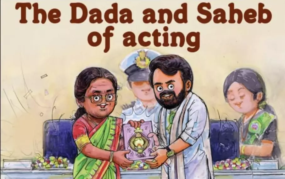 'ദാദാസാഹെബ് ഫാൽക്കെ അവാർഡ് നേടുന്ന ഏറ്റവും പ്രായം കുറഞ്ഞ നടനായി മലയാളത്തിന്റെ മോഹൻലാൽ!' എന്നാണ് സോഷ്യൽമീഡിയ പ്ലാറ്റ്ഫോമുകളിൽ പങ്കുവച്ച പോസ്റ്ററിന് അടിക്കുറിപ്പ് നൽകിയിരിക്കുന്നത്. നേരത്തെ മിൽമയും ലാലിനെ അഭിനന്ദിച്ചുകൊണ്ട് പോസ്റ്റര് പങ്കുവച്ചിരുന്നു. ' അഭിനന്ദനങ്ങൾ ലാലേട്ടാ...അയാൾ ചരിത്രം എഴുതുകയാണ്' എന്നാണ് പോസ്റ്ററിൽ കുറിച്ചിരിക്കുന്നത്.
